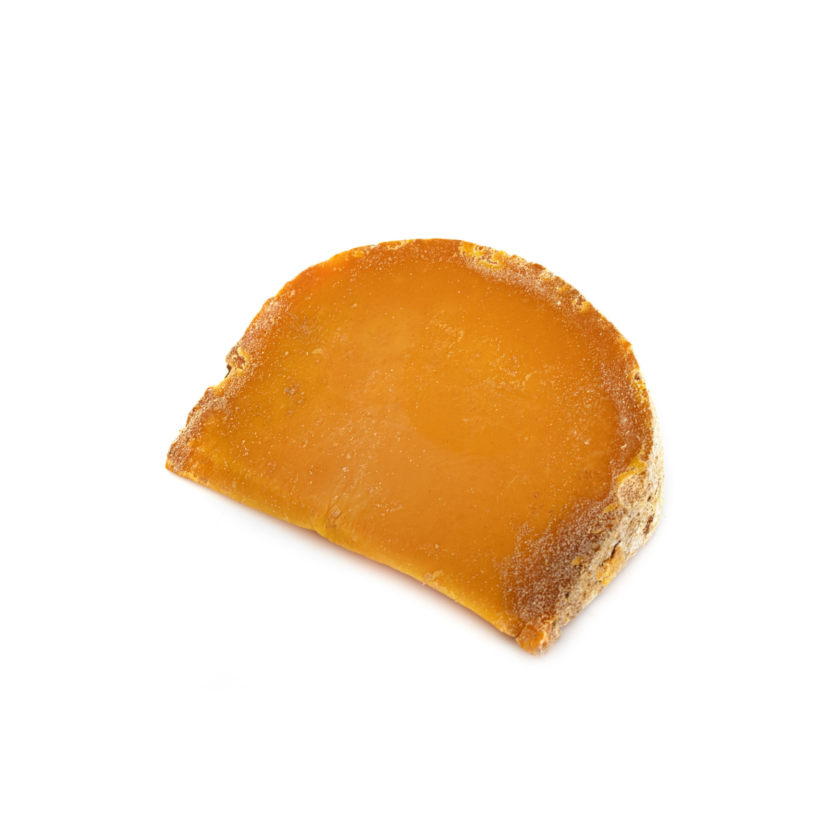 This Mimolette Réserve is an aged French cheese known for its deep orange hue, firm crumbly texture, and intense nutty aroma. After many months of maturation, it develops a bold, caramelized flavor with a satisfying sharpness and long, savory finish.