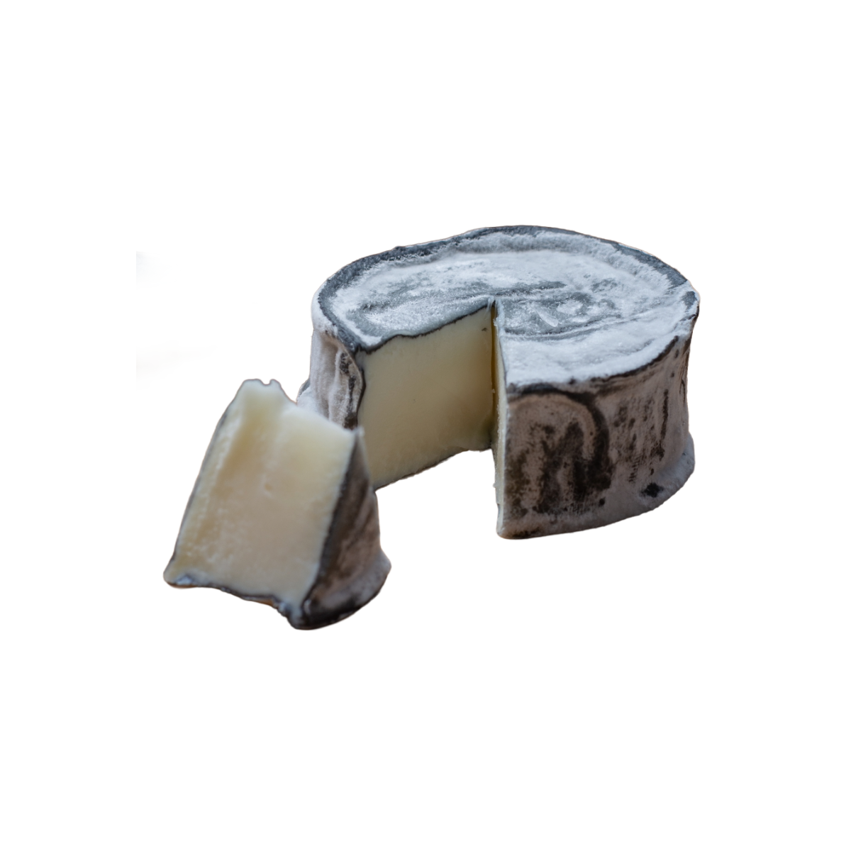 This Parthenay Cendré is a soft goat’s cheese lightly coated in vegetable ash, which helps develop its delicate rind and subtle earthy aroma. Its creamy, mildly tangy paste contrasts beautifully with the refined smokiness of the ash exterior.