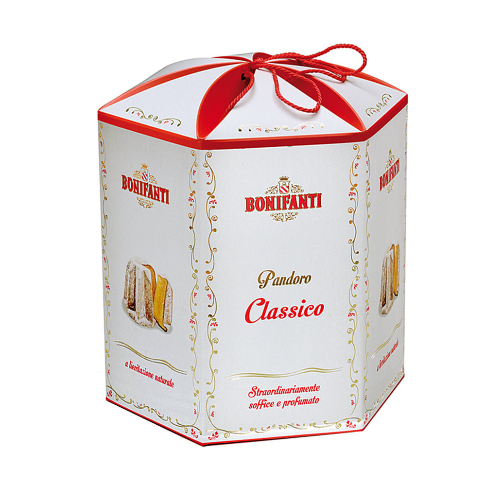 The classic Bonifanti Pandoro comes in the special Corolla pack that opens up as a fresh flower bud.