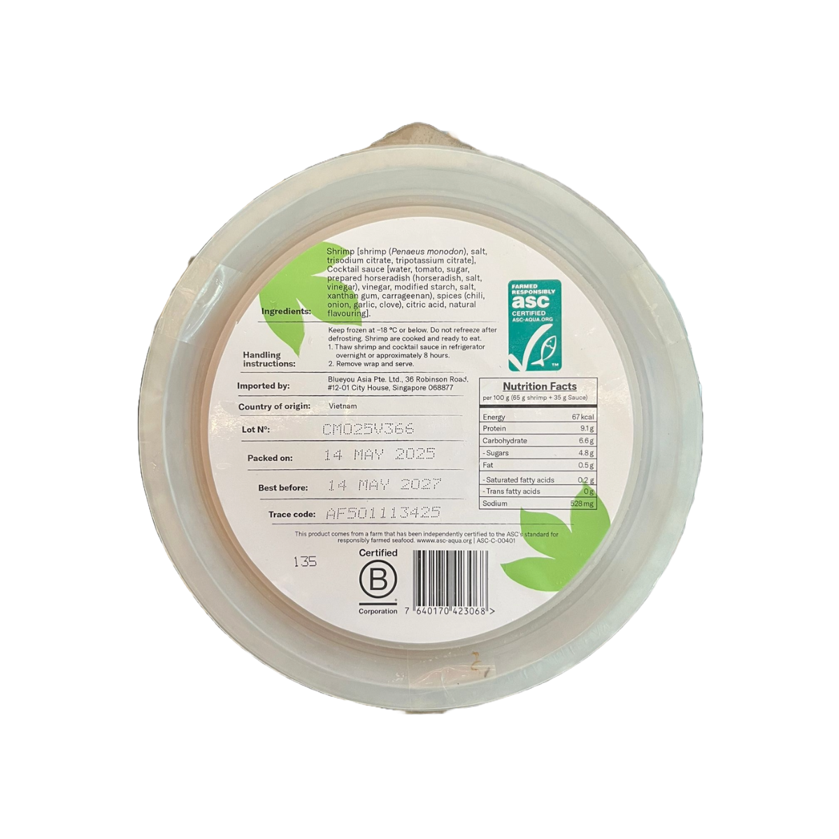 Blueyou Black Tiger Shrimp Cooked & Peeled (Tail On) offers large, succulent shrimp, perfectly deveined and frozen for peak freshness. Each piece is ready to enjoy with a flavorful sauce, making it an effortless gourmet addition to any meal.