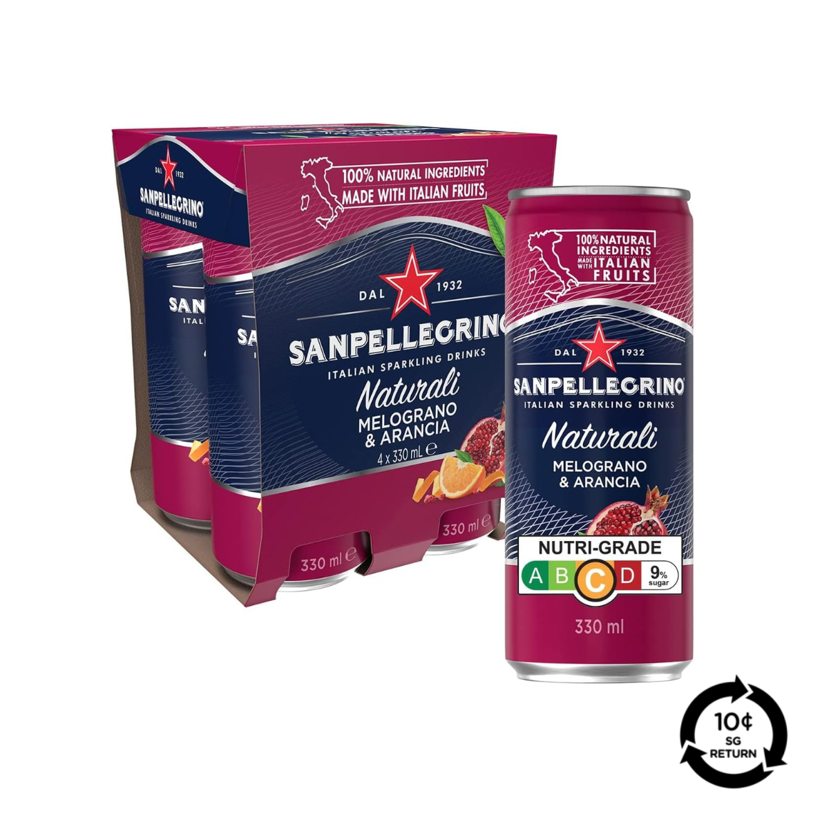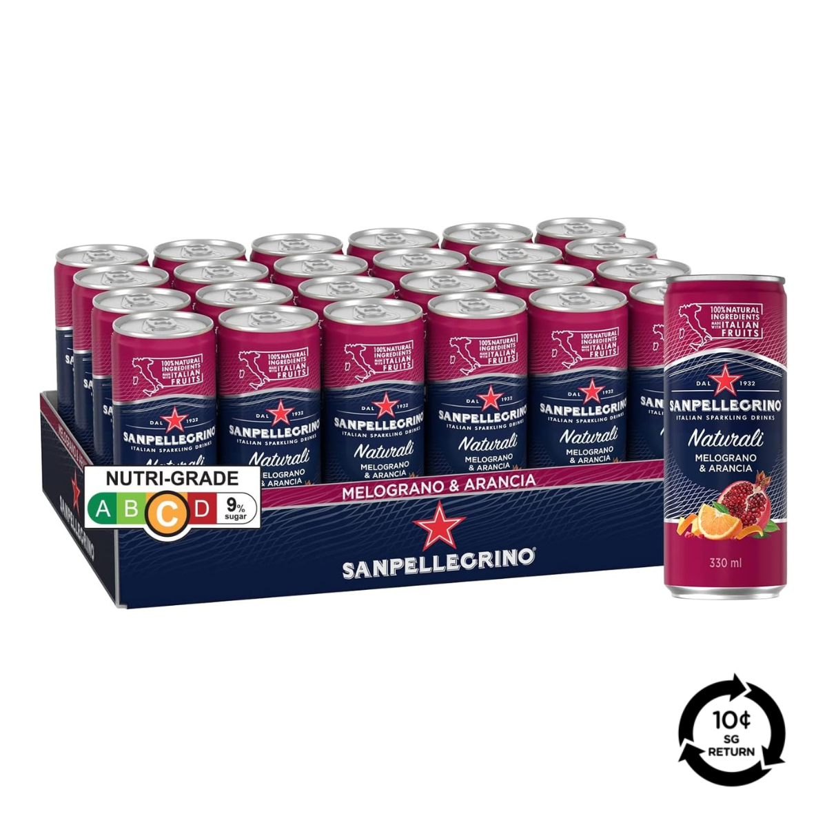 All-natural and unmistakably iconic, Sanpellegrino Melograno & Arancia is a refreshing Italian sparkling beverage that artfully blends the juicy sweetness of sun-ripened oranges with the lush, tart notes of pomegranate in every sip. Crafted with fine bubbles and natural fruit juices, its vibrant ruby-red hue and balanced flavor make it an invigorating choice to enjoy chilled on its own or paired with light meals.